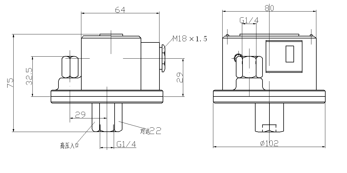 520/11DD差壓開(kāi)關(guān)外形尺寸及安裝尺寸(單位:mm)
