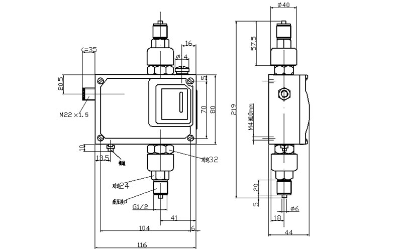 530/7DD差壓開關(guān)外形尺寸及安裝尺寸(單位:mm)