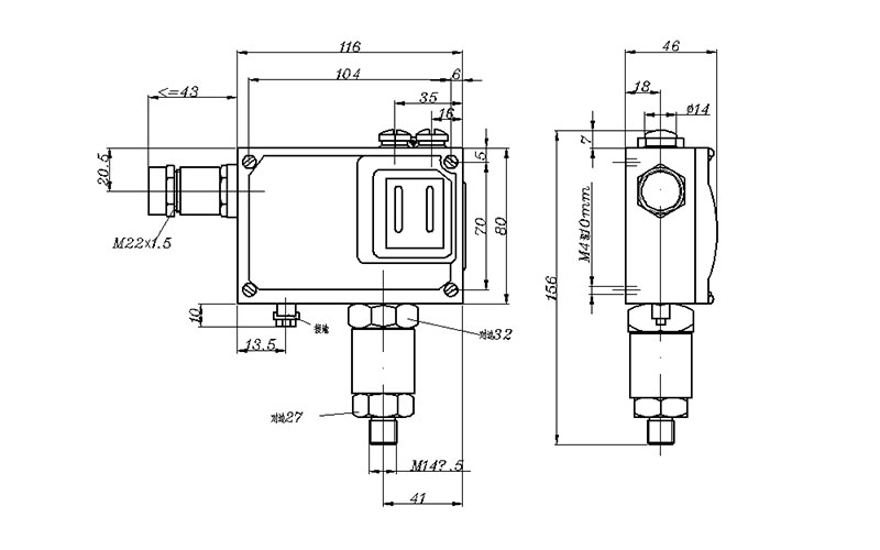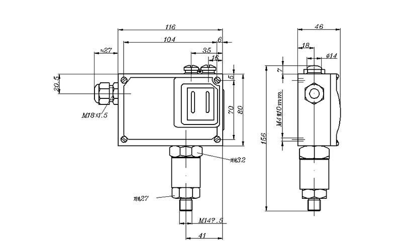YTK-18H防爆壓力開(kāi)關(guān)外形尺寸及安裝尺寸(單位:mm)