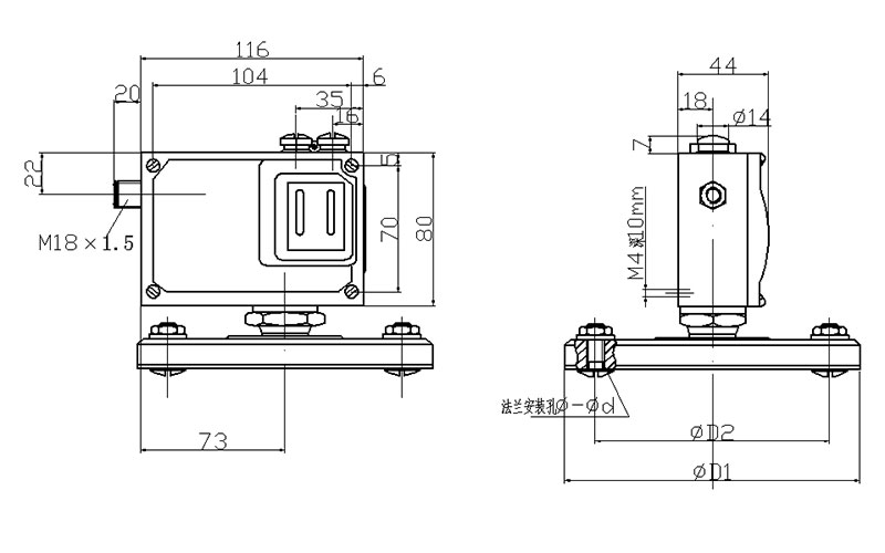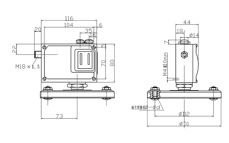 安裝(或拆卸)控制器時(shí)要特別注意:防止傳感器(法蘭盤)與開關(guān)殼體發(fā)生相對轉(zhuǎn)動(dòng)。 若客戶對法蘭尺寸有特定要求,可協(xié)商定制。