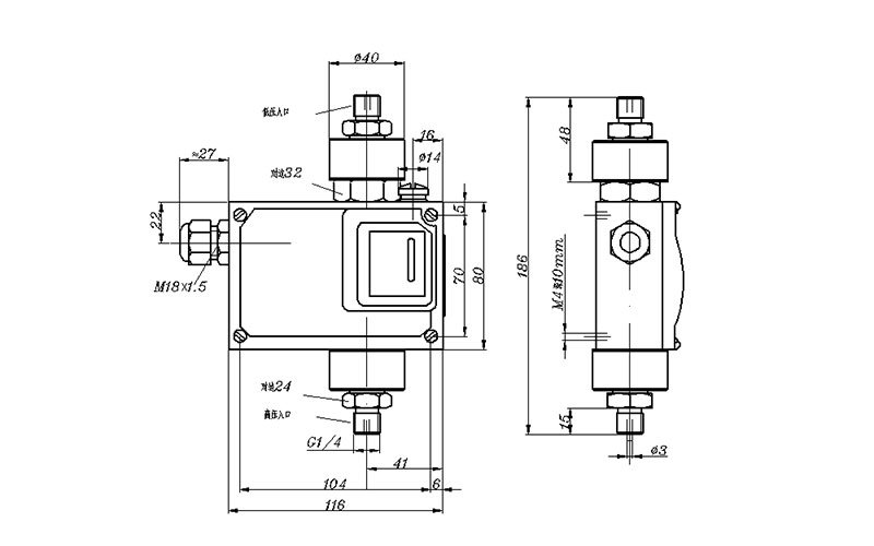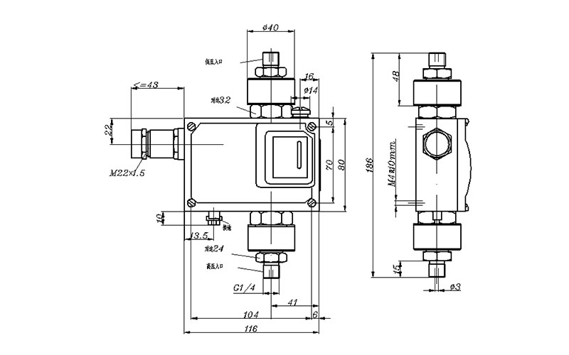 540/7DD差壓開關外形尺寸及安裝尺寸(單位:mm)