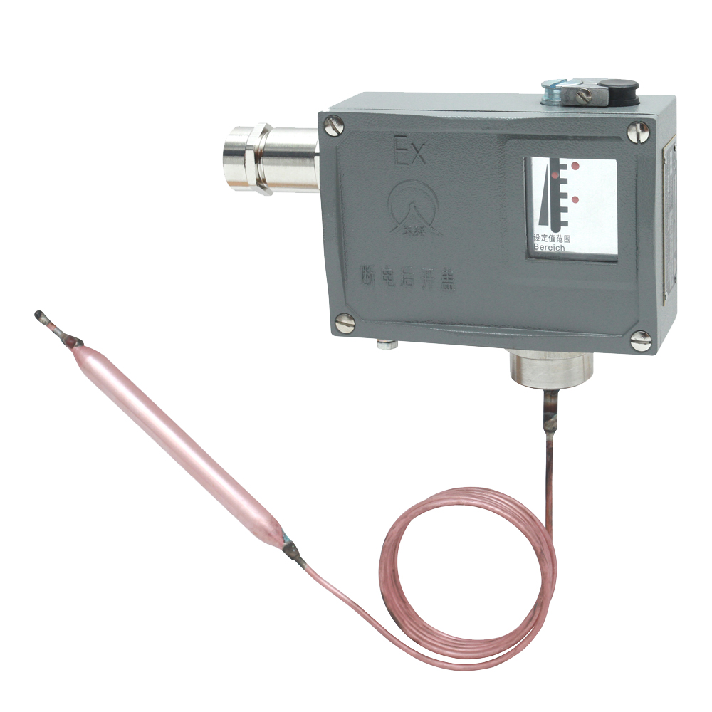 541/7T防爆溫度開(kāi)關(guān)采用帶毛細(xì)管溫包式傳感器,可用于流動(dòng)的中性氣體和液體介質(zhì),如果介質(zhì)為腐蝕性,安裝時(shí)可選用不銹鋼溫包保護(hù)套套在銅質(zhì)溫包外(見(jiàn)附件)。